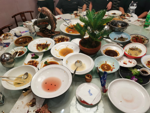 在推上蛋糕,唱完生日歌,送上祝福,人人酒足飯飽之后,才發(fā)現(xiàn)團(tuán)建活動(dòng)來(lái)到了最高潮——小游戲。一個(gè)考驗(yàn)反應(yīng)力、專注力的小游戲,做錯(cuò)或者沒反應(yīng)過來(lái)的人都得接受旁邊人幫自己夾的“一口”菜。真是一口還是半碗,小編就不說(shuō)了,下面的圖片表明了事情的結(jié)果。