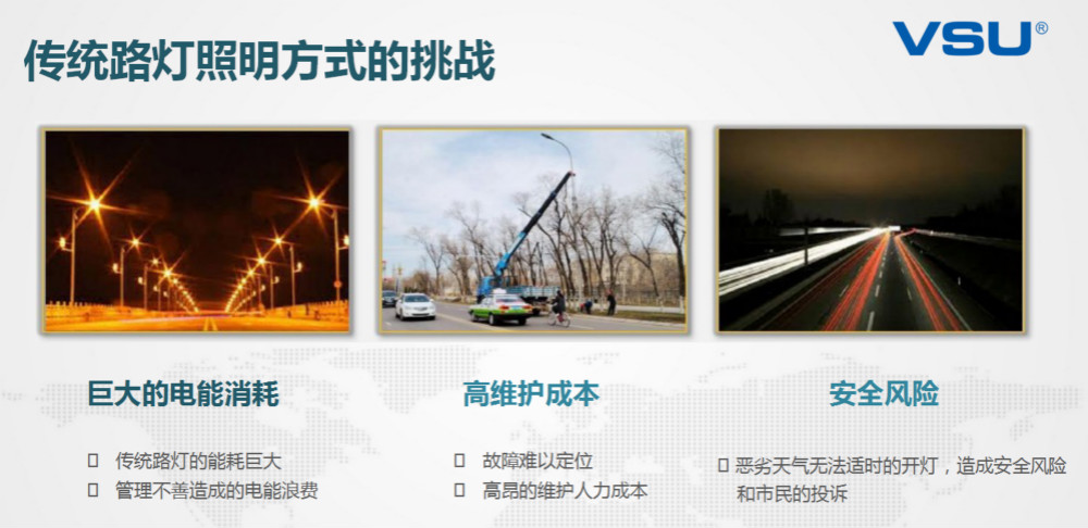 VSU依托公司在單燈控制器、集中控制管理器和硬軟件系統(tǒng)集成開發(fā)能力,成功開發(fā)VSU智慧路燈。VSU智慧路燈具有以下特點: