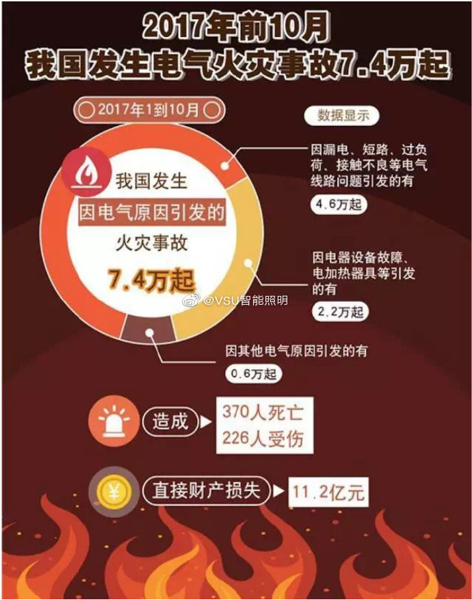 據(jù)公安部消防局統(tǒng)計顯示,2011-2016年:電氣火災(zāi)52.4萬起;造成3261人死亡;兩千余人受傷;經(jīng)濟損失達(dá)92億余元;每年觸電身亡約每小時1人。