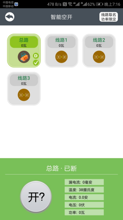 個人手機客戶端個人用戶通過手機號、微信、QQ登陸遠(yuǎn)程設(shè)置、查詢、遙控或定時開關(guān)自動完成漏電保護功能自檢分線路用電計量,故障實時報警等。