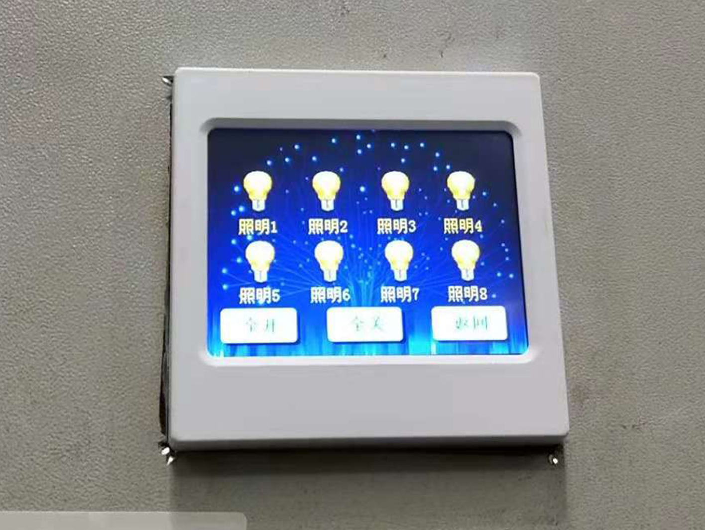 該項(xiàng)目采用的是經(jīng)濟(jì)型的照明控制模塊,如下圖,4回路的,8回路的都有。且由于經(jīng)濟(jì)型模塊不具備遠(yuǎn)程控制功能,所以該項(xiàng)目則是每個(gè)電箱配了一個(gè)3.5寸觸摸屏。