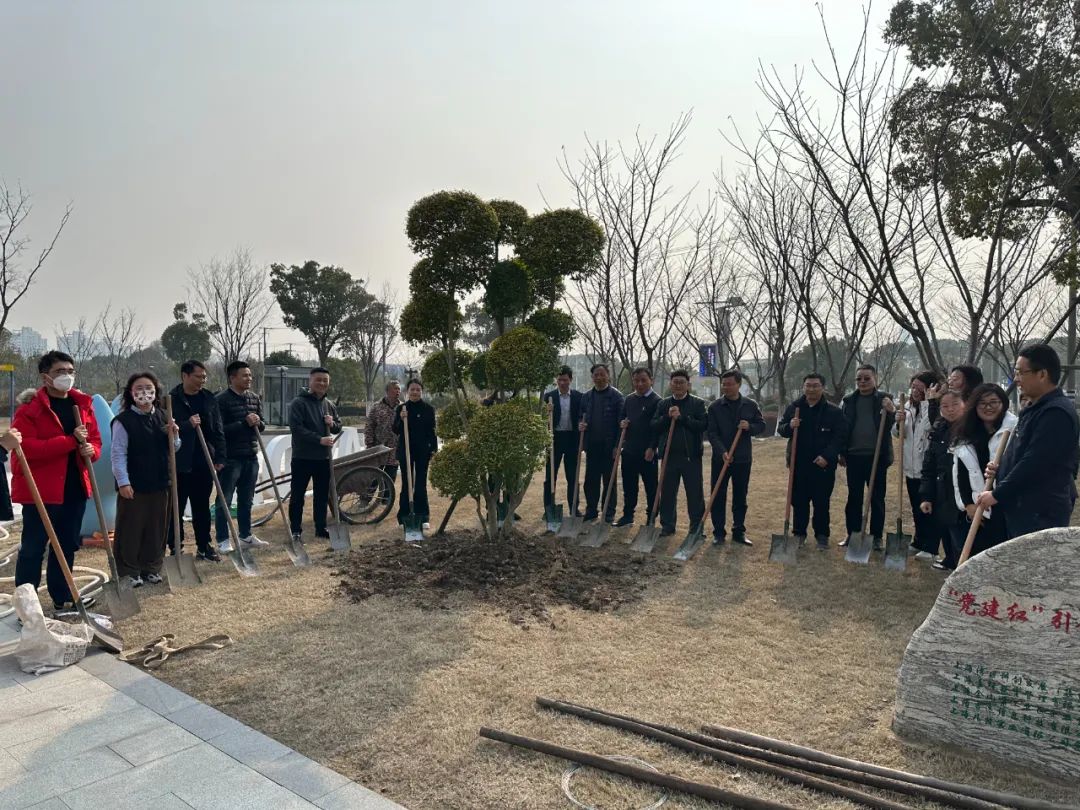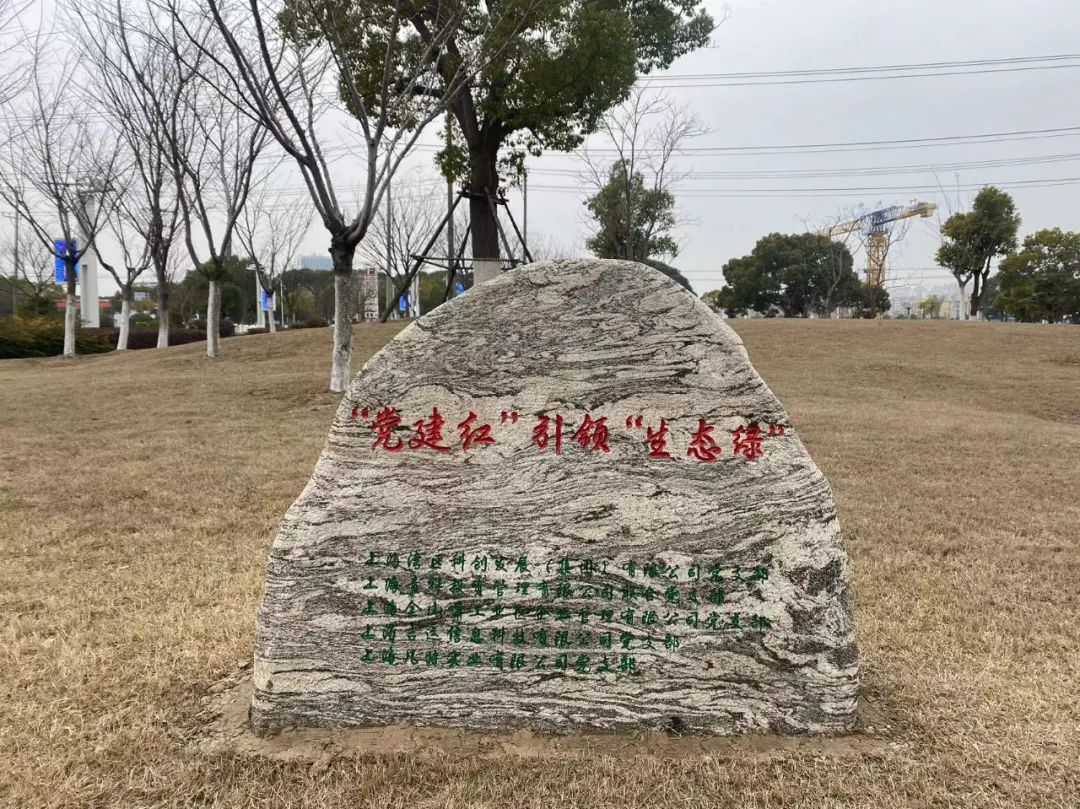 一塊鐫刻著“黨建紅引領(lǐng)生態(tài)綠”以及五個(gè)黨支部名字石碑矗立在新栽苗木旁邊,這塊石碑不僅是對我們植樹活動(dòng)的見證,更是對黨建引領(lǐng)綠色發(fā)展理念的傳承與弘揚(yáng)。它象征著五個(gè)黨支部在黨建紅的引領(lǐng)下,攜手并進(jìn),共同書寫綠色發(fā)展的新篇章。