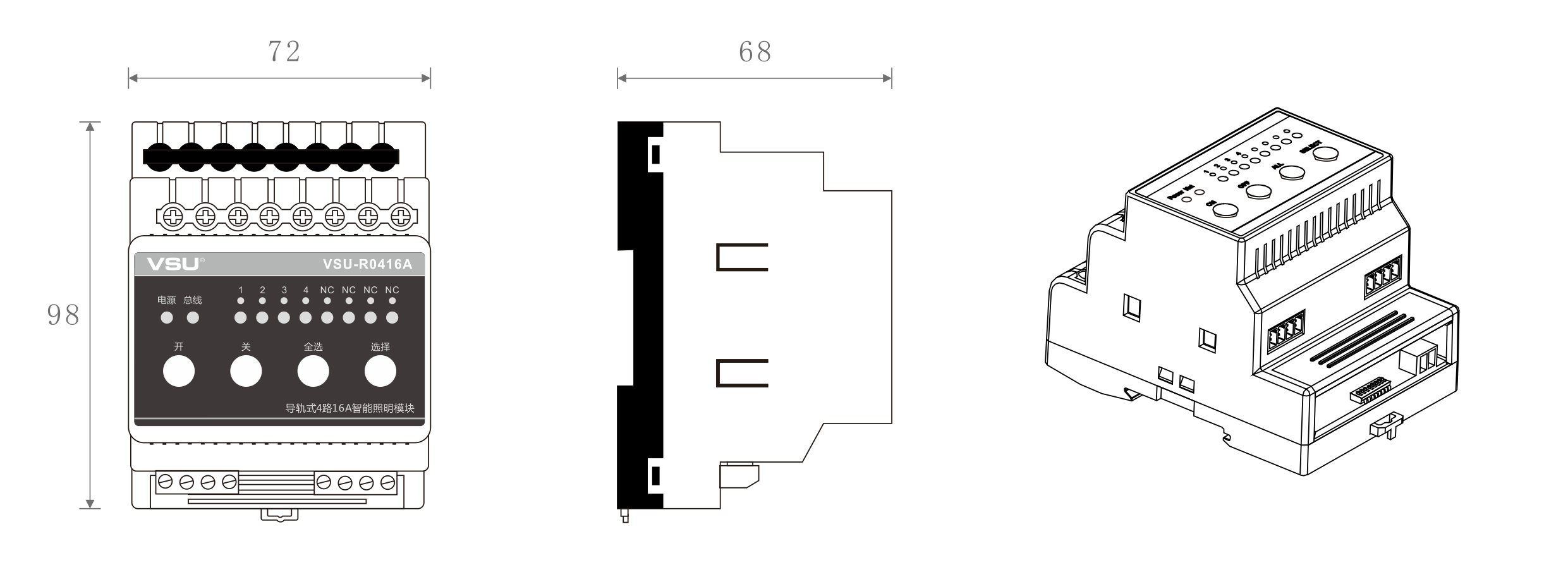 | 1,標(biāo)準(zhǔn)導(dǎo)軌式安裝占4個(gè)模數(shù)位;2,提供4路16A繼電器開關(guān),每回路可獨(dú)立控制3520W設(shè)備開關(guān);