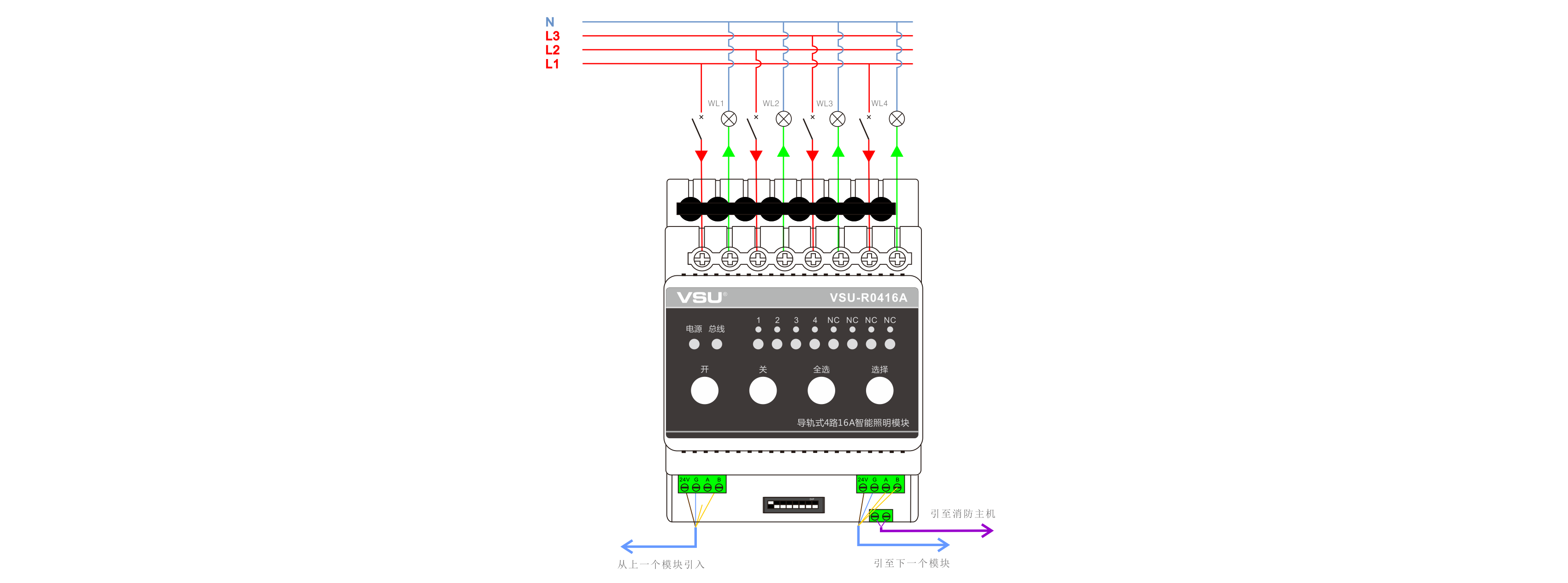 | 本產(chǎn)品為導(dǎo)軌式安裝,含4路智能繼電器,每回路可獨(dú)立控制3520W燈具的開關(guān),帶應(yīng)急按鍵,LED燈時(shí)時(shí)指示各個(gè)回路開關(guān)狀態(tài) |