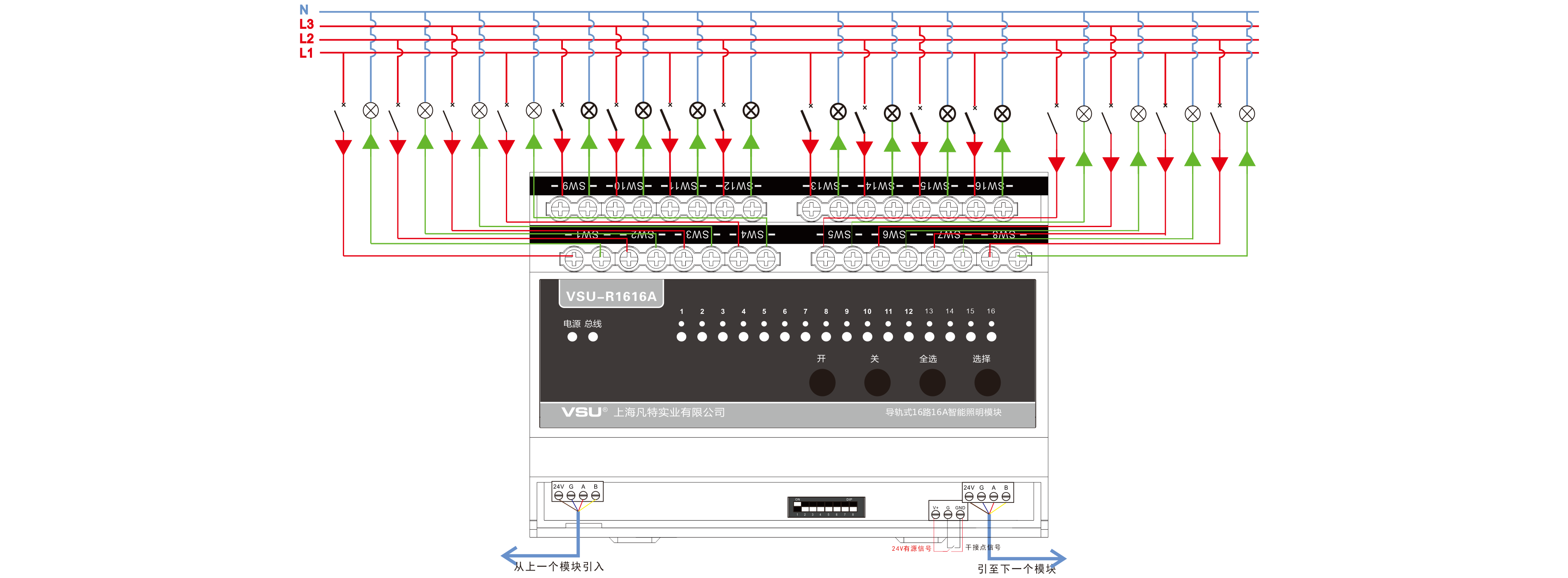 本產(chǎn)品為導(dǎo)軌式安裝,含16路智能繼電器,每回路可獨(dú)立控制3520W燈具的開關(guān),帶應(yīng)急按鍵,LED燈實(shí)時(shí)指示各個(gè)回路開關(guān)狀態(tài),可設(shè)置為互鎖控制8組窗簾開合; |