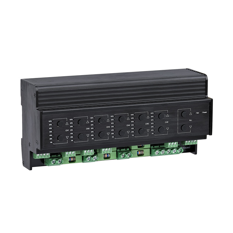 本產(chǎn)品為導(dǎo)軌式安裝,提供1路660W功率,可對LED射燈、筒燈和鹵素?zé)舻鹊碾妷赫{(diào)光,輸出調(diào)光類型后沿調(diào)光,帶過載、短路保護大大加強了產(chǎn)品的穩(wěn)定性; |