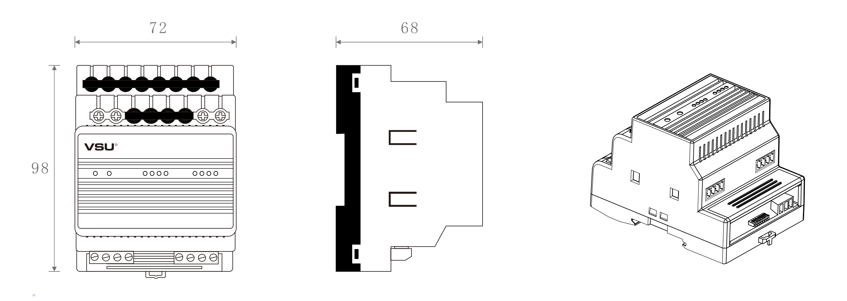 1,標準導(dǎo)軌式安裝占4個模數(shù)位;